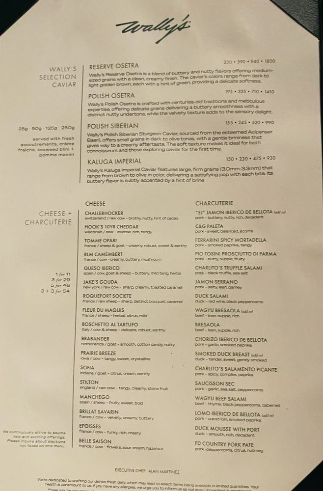 Introducing the menu at Wally's - Santa Monica, a fusion of Beer, Wine & Spirits, French, and New American cuisine. Located at 214 Wilshire Blvd Santa Monica, CA 90401, this restaurant offers a variety of options for patrons, including delivery, takeout, reservations, vegan and vegetarian choices, and a classy yet casual dining experience. With a full bar, good for kids, happy hour specials, and even dog-friendly seating, Wally's caters to a diverse audience. The standout dishes include the signature Wally's Burger, perfectly juicy and flavorful, and expertly cooked steaks. The ambiance is stylish and welcoming, with an extensive wine selection that pairs well with their charcuterie boards. While prices may be on the higher side, the quality and experience at Wally's are worth the investment. Highly recommended for those looking for a festive atmosphere and top-notch dining experience.